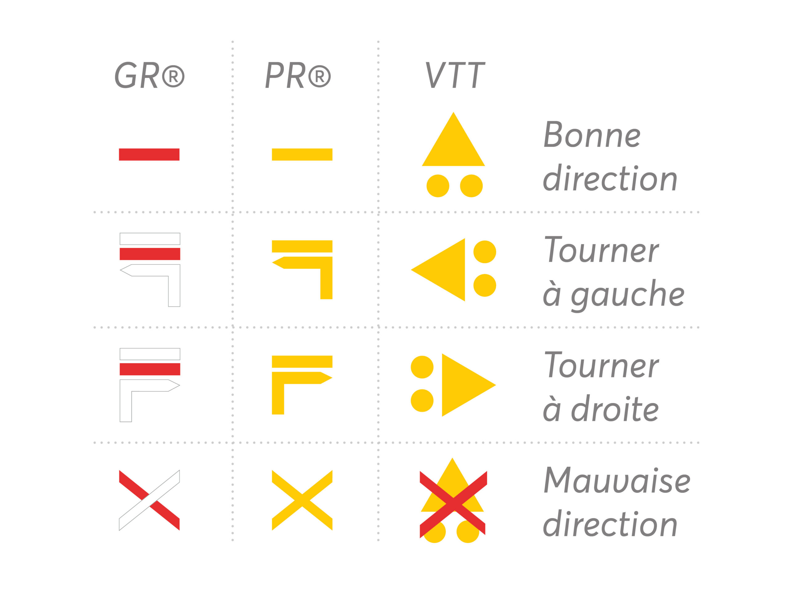 Apprendre la signification des symboles de balisage des parcours
